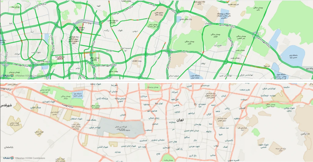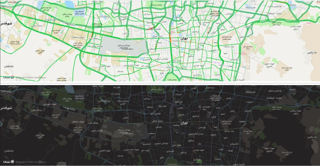 پس از ایجاد شدن نقشه، میتوانید نمایش ترافیک نقشه را با این تابع خاموش و روشن کنید.